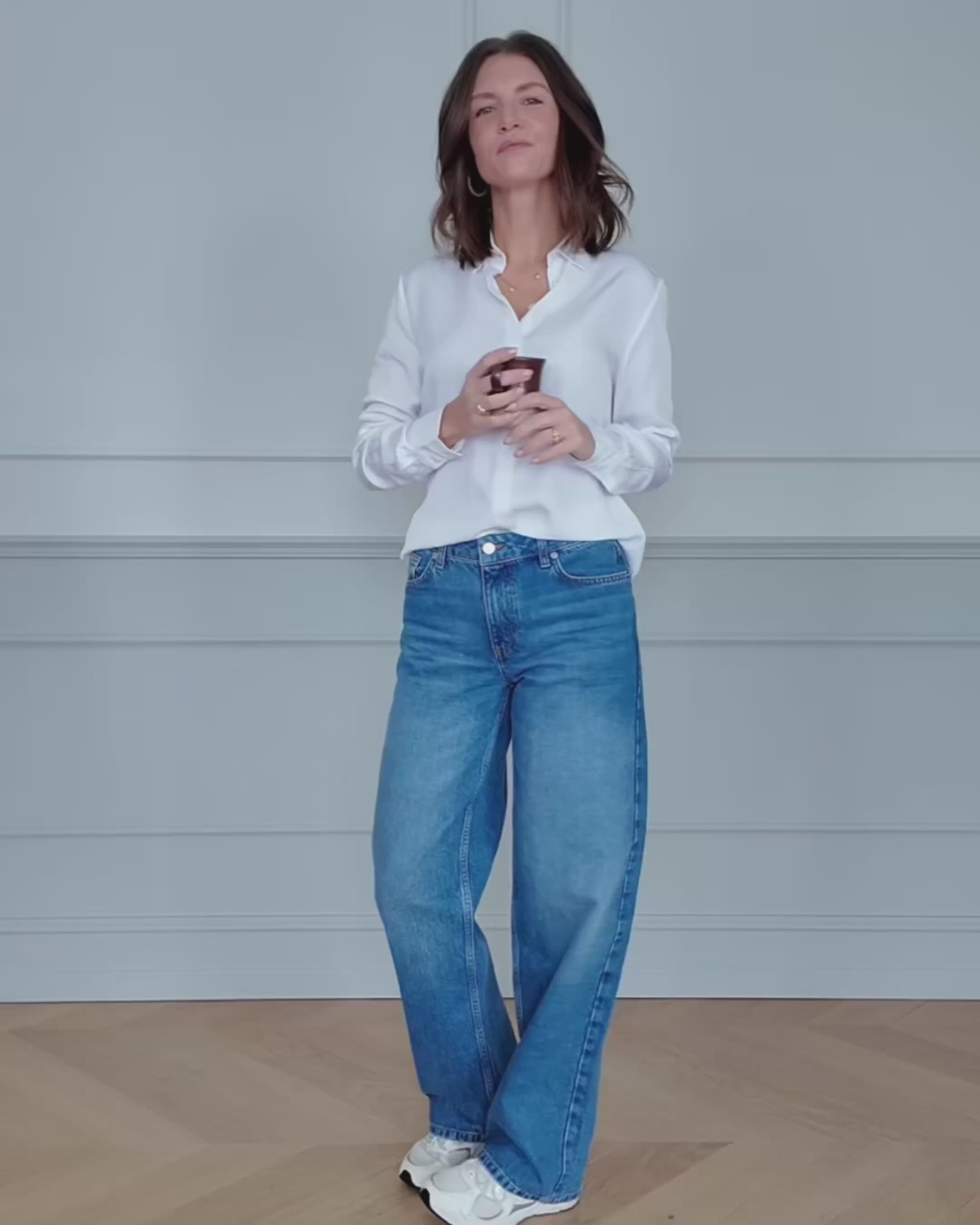 Avec sa longueur supplémentaire, la chemise est idéale à porter sous un pantalon ou une jupe, créant un look féminin et sophistiqué, parfait pour la journée de travail.